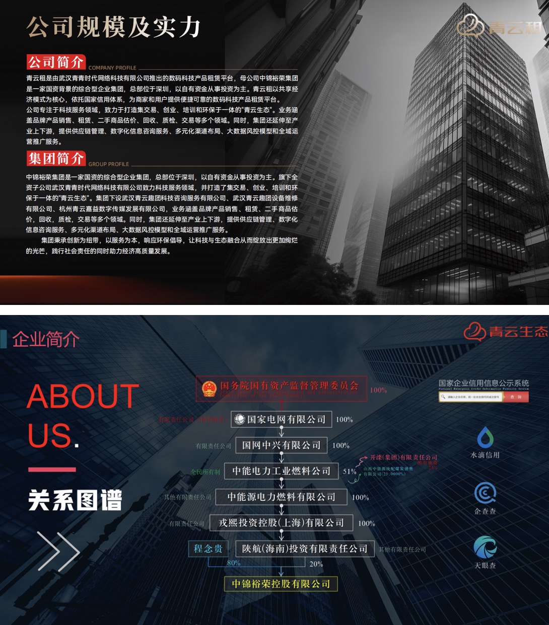 宣传而已露出,“青云租”的运营者是武汉青青时间聚积科技有限公司(简称青青时间),斥地于2020年,注册资金1.5亿元,大鼓吹是深圳爱高创科控股有限公司(简称爱高创科)。